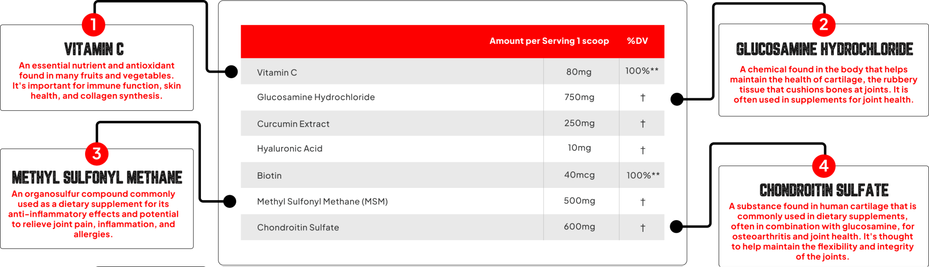 - Supports join and connective tissue health